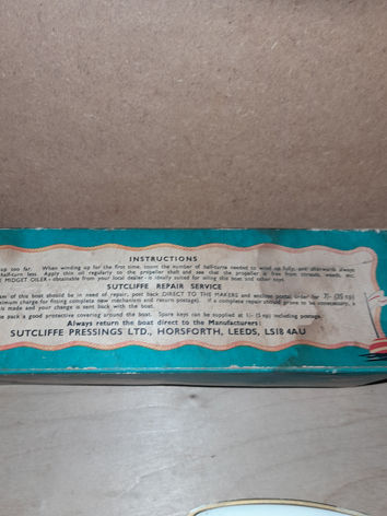Jupiter Pilot Cruiser 9 inches long. The red hulled variant of this boat is one of the most common Sutcliffe boats , but the blue hulled version is much rarer.