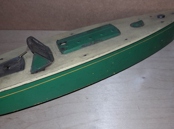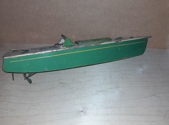 Star SM1 speedboat. I love these Star speedboats because I love the Star company , history , products and all that goes with it , but I have to admit they are not the best performers. I have two or three of these speedboats , but they have very weak springs in the clockwork motors. This, maybe is because of their age, but similar age clockwork boats from other manufacturers don't seem to have such weak springs in their motors. Star supplied these to Woolworths under the 'Britannia' brand.