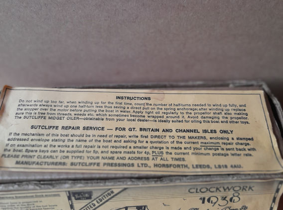 Sutcliffe Jane with the rails on the 'engine hatch cover'. There were very few Janes made. This boat was supplied in a very basic corrugated box as shown in the picture. A few fake Janes are knocking about.